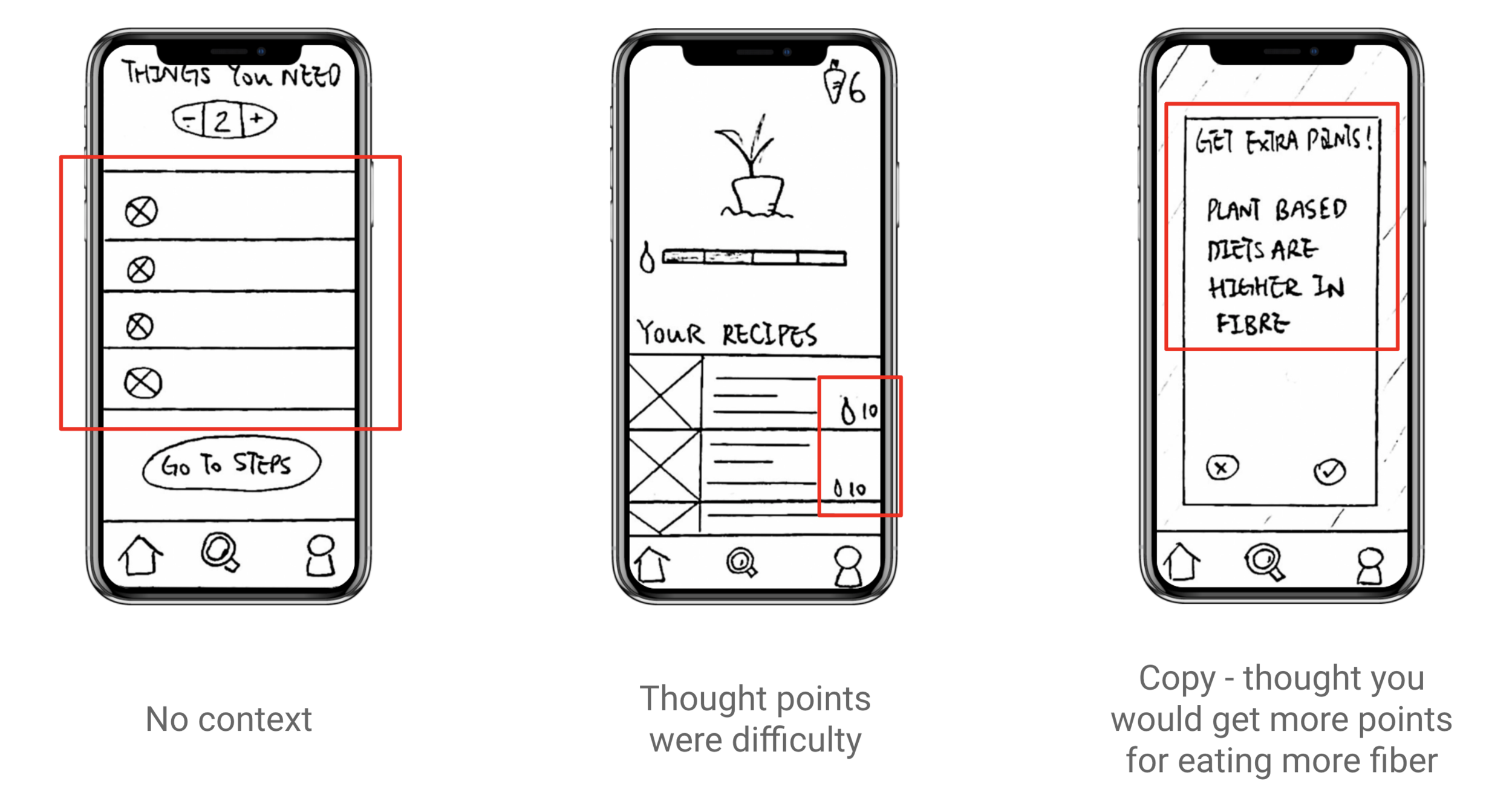 We focused on gauging how well a user could perform the fundamental task of choosing and executing a recipe.